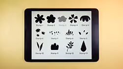 5 flowers, 5 trees, and 5 grass stamps so kids can create their own landscape backgrounds for characters and stories.